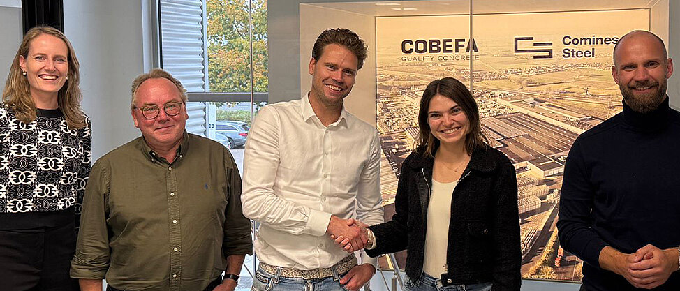 Bildunterschrift: Steffi Cardon, Sales Director Cobefa | Paul Vandenbroecke, Sales Manager DACH | Jeroen Decock, Geschäftsführer Cobefa | Luisa Rinn, Geschäftsführerin Rinn | Benjamin Hack, Verkaufsleiter Rinn